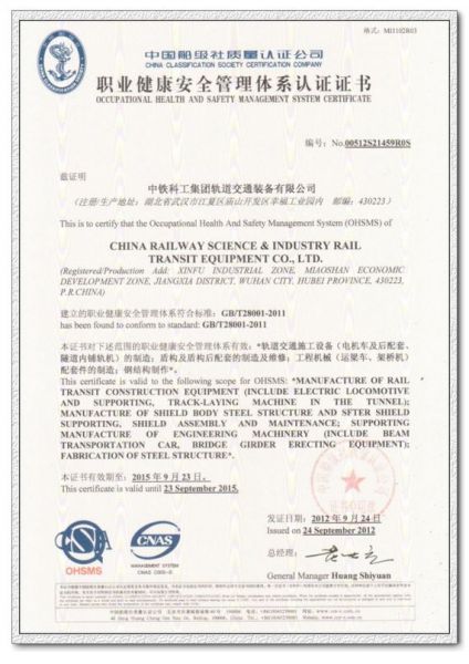 | 职业健康安全管理体系认证证书 |