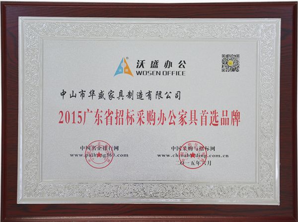 产品名称: 2015广东省招标采购办公家具首选品牌 |