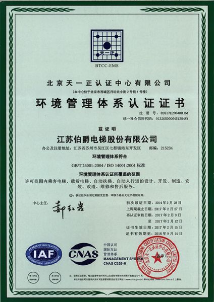 环境管理体系认证证书