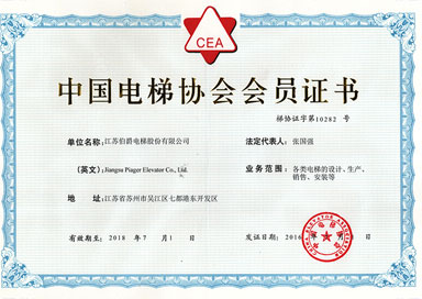 中国电梯协会会员证书